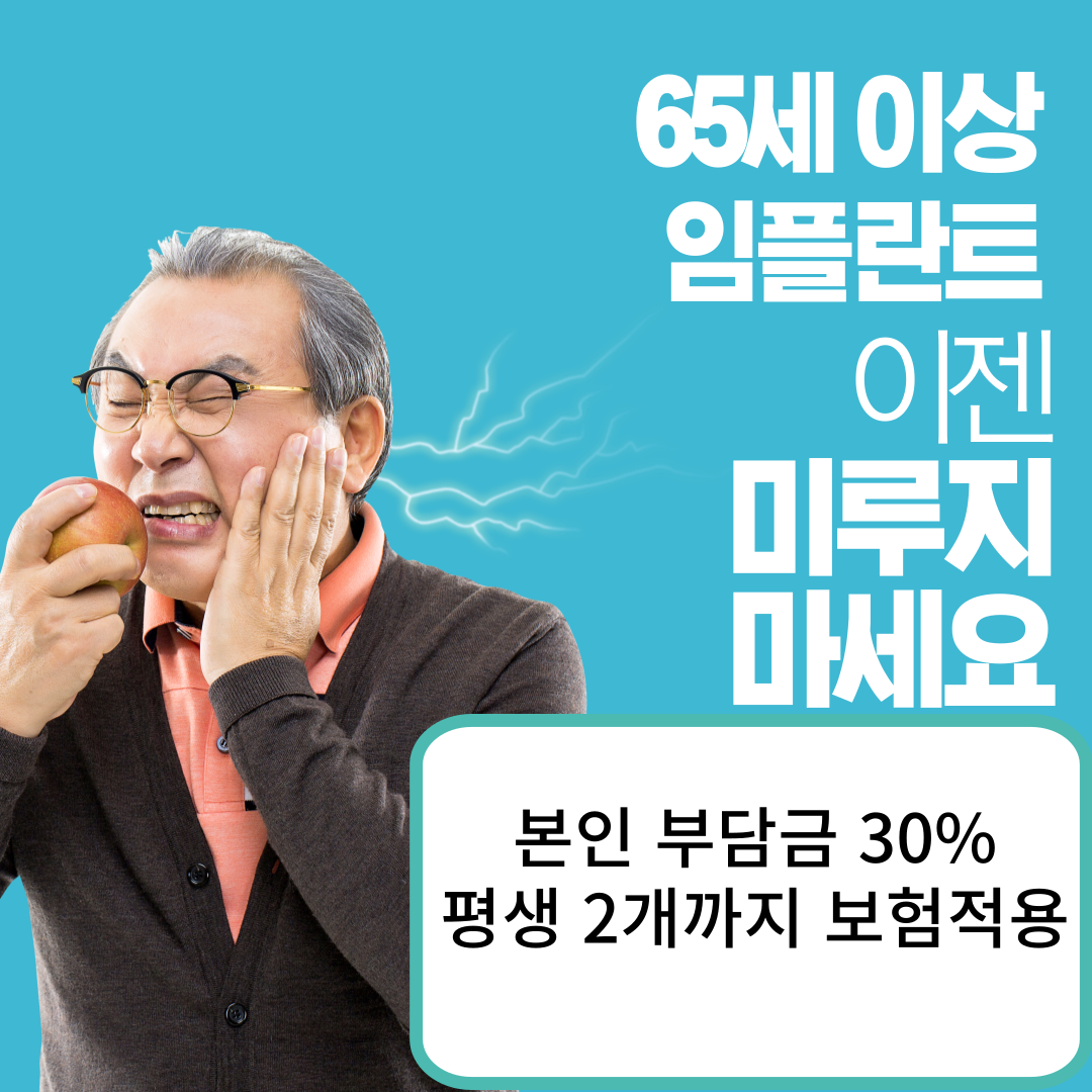 만 65세 이상의 임플란트에 대한 정부의 지원은 지속적으로 확대되고 있습니다. 비용이나 통증에 대한 우려에도 불구하고 정부는 만 65세 이상 국민들에게 임플란트 및 틀니에 건강보험을 적용해 본인 부담금을 줄여주는 정책을 시행하고 있습니다.